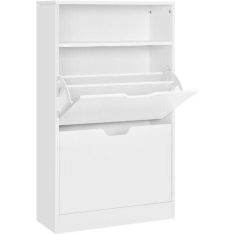 Vasagle Meuble A Chaussures 2 Abattants Etagere A Chaussures A 3 Niveaux Avec 1 Compartiment Ouvert Placage Melamine Facile A Nettoyer 60 X 24 X 102 Cm Blanc Par Songmics Lbc040w01